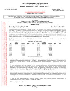 $11,415,000 Owen County KY School District Fin. Corp. Revenue Bonds, Series 2017
